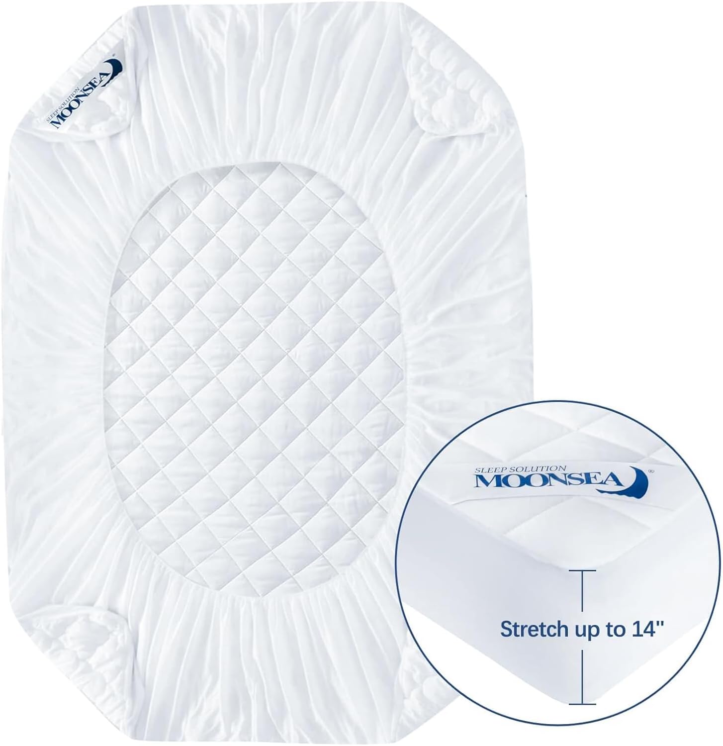 For those seeking an effective cot mattress protector, the Moonsea Mattress Pad is an excellent choice. Its waterproof features, thanks to a reliable TPU layer, keep your childâs mattress safe from liquids and spills. The absorbent top ensures any moisture is quickly soaked up, while the breathable microfiber keeps the surface cool and comfortable. The quilted diamond pattern offers added support and stability, making this mattress pad ideal for both everyday use and overnight rest. With a deep pocket design, it fits seamlessly onto a 31â x 75â mattress and easily adapts to deeper sizes up to 16â in height. Being machine-washable adds to the convenience, making it easy to maintain and use for years to come. A must-have for families looking for a practical, stylish, and protective mattress cover.