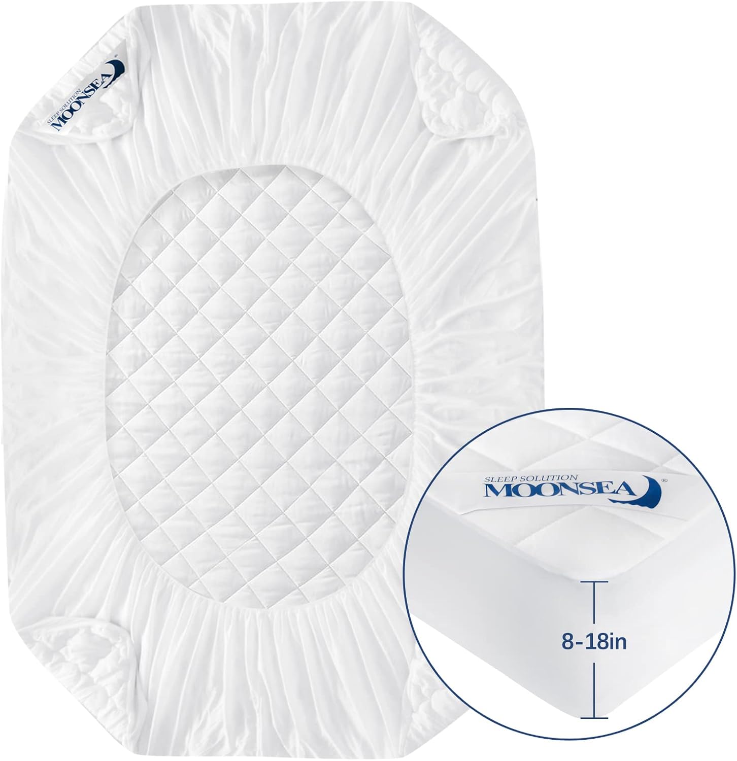 Designed for maximum mattress protection, the Moonsea Queen Mattress Toppers Waterproof & Absorbent cover blends comfort with reliability. Its ultra-soft microfiber fabric offers a smooth, gentle touch underfoot while maintaining a breathable environment for a cool night's sleep. The outer layer of waterproof TPU ensures a strong defense against spills, sweat, and moisture, making it an ideal choice for anyone seeking durable, long-lasting mattress care.