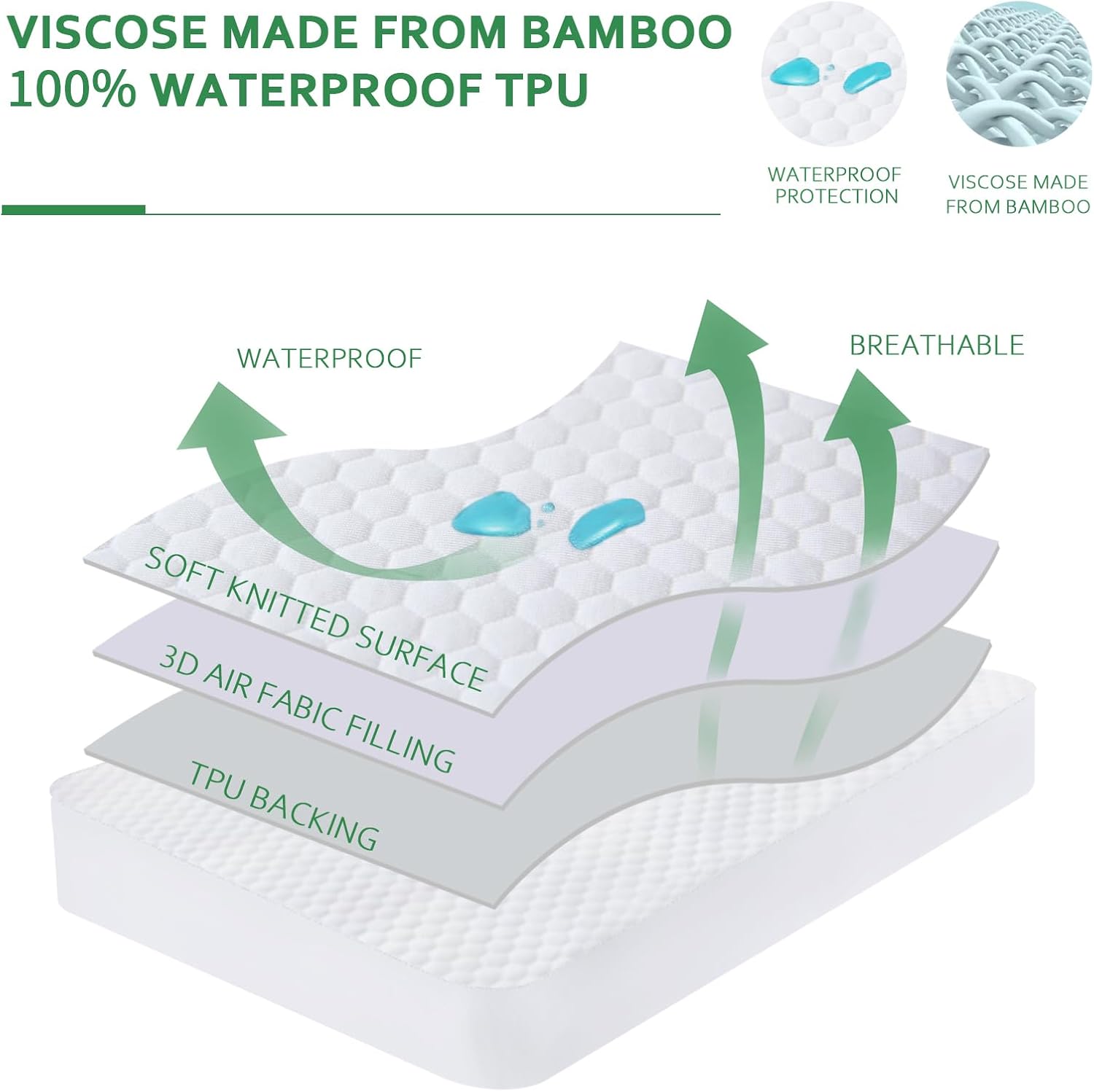 The 3D air filling technology ensures a breathable and plush surface, making it perfect for uninterrupted sleep without any crinkling or plastic noises. A waterproof TPU membrane on the back creates a reliable shield against spills, stains, and moisture, keeping your mattress clean and fresh. The fitted design with deep pocket elastic guarantees a secure fit on any mattress up to 18 inches, preventing shifting or bunching for maximum comfort and protection.