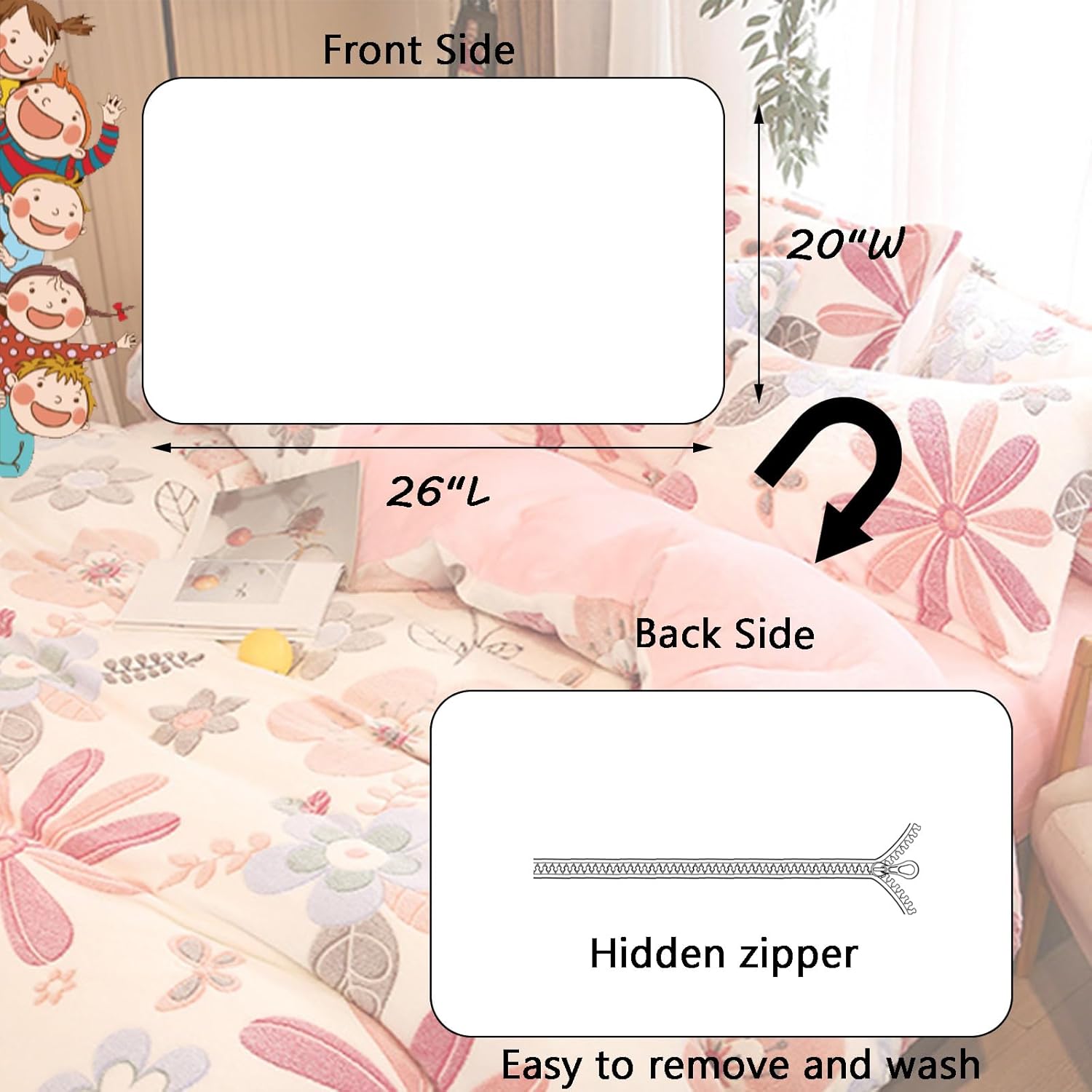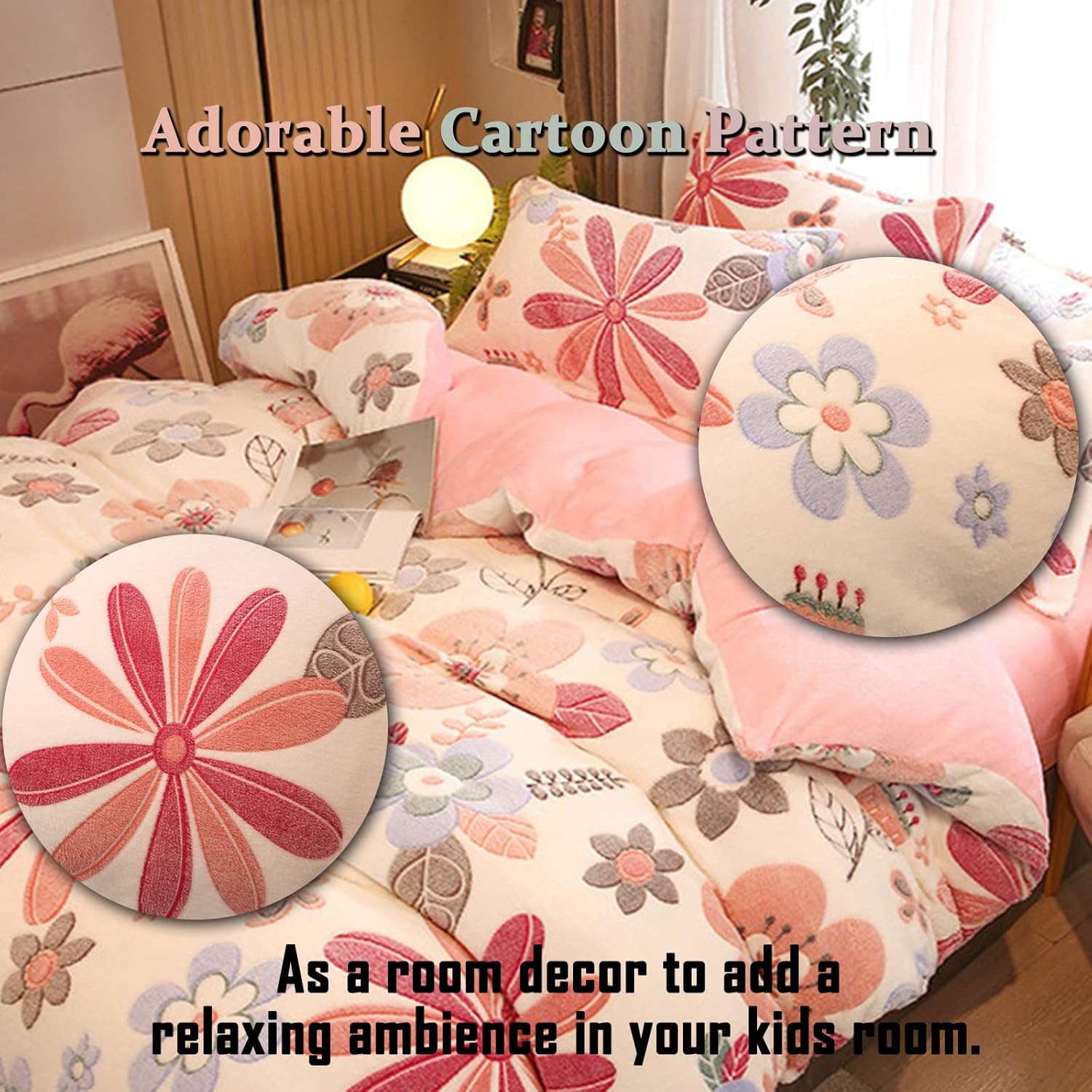 This enchanting bedding set transforms any room into a soft and inviting sanctuary. Featuring a playful kawaii cartoon and floral pattern, it adds charm, color, and a touch of fantasy to your little one's space. Experience the comfort of ultra-soft microfiber fabric, designed to keep your skin feeling gentle and your sleep restful. Ideal for girls, toddlers, and even teenagers, this set offers a unique way to personalize their sleeping area with style and charm.