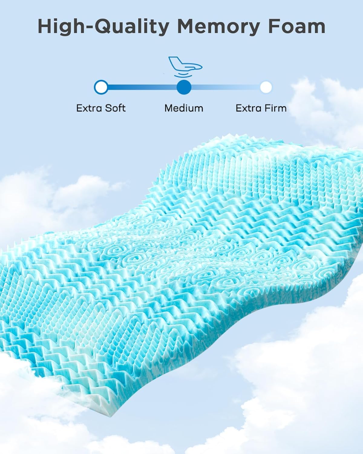 Crafted to enhance your sleep quality, the PERLECARE 3-inch 7-Zone King Memory Foam Mattress Topper is designed with precision to offer tailored support to your head, shoulders, back, waist, hips, knees, and feet. This unique 7-zone system helps maintain proper spinal alignment, reducing pressure points and delivering a more restful nightâs sleep. Whether you sleep on your back, side, or stomach, this topper adapts to your body for maximum comfort and relaxation.