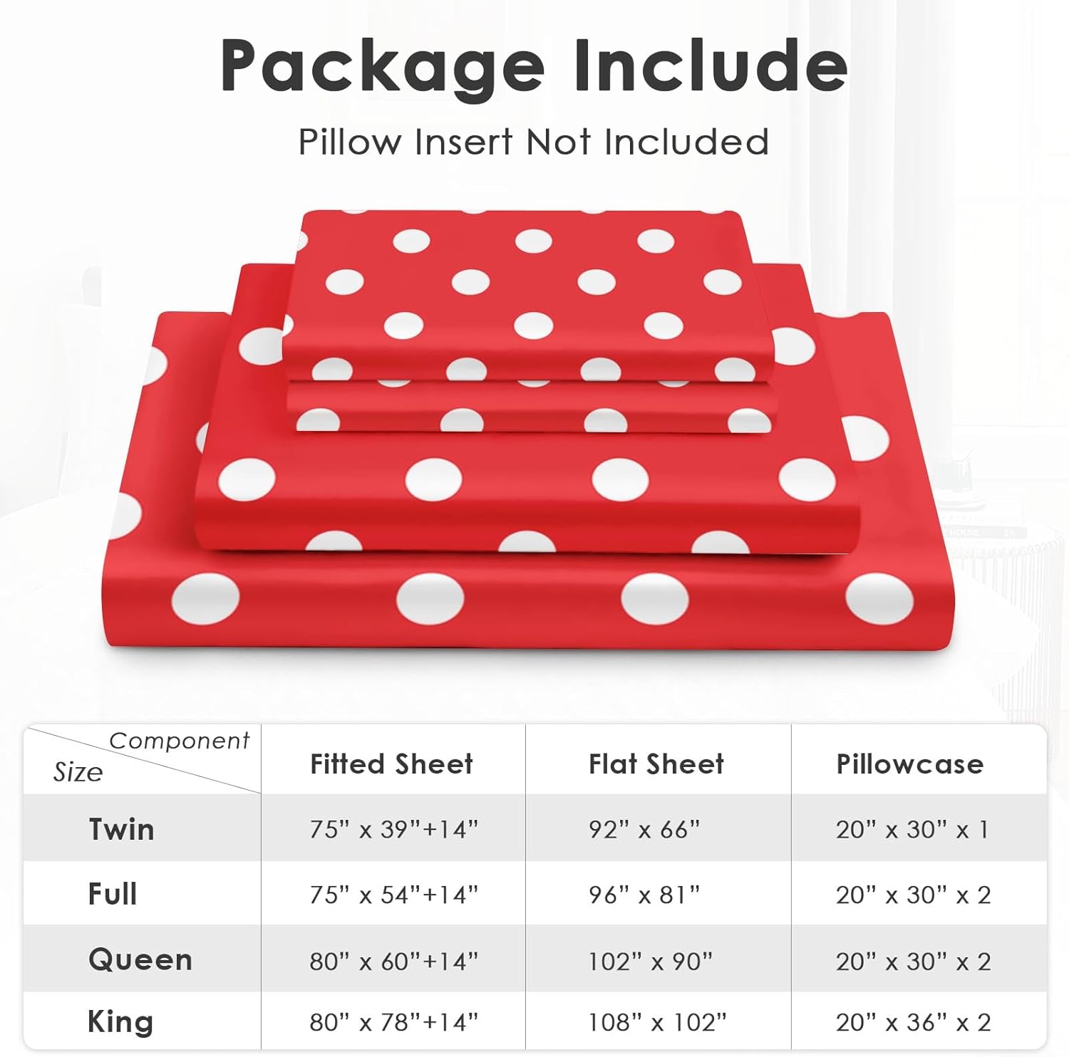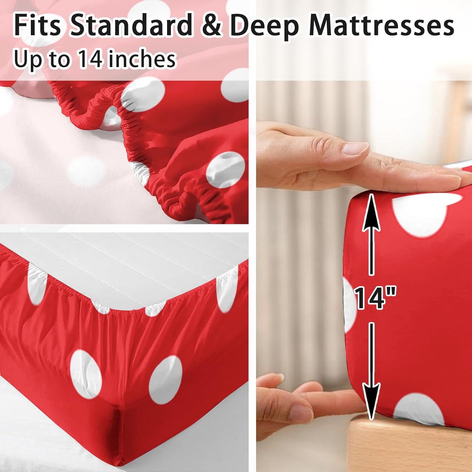 This 4-piece bed sheet set merges comfort and style with its eye-catching red polka dot design, adding a touch of retro charm to any bedroom setting. Whether you're dressing your child's room or updating your own, these sheets offer a perfect blend of functionality and aesthetic appeal.