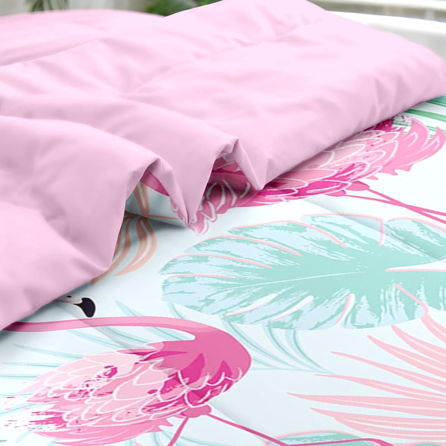 The bold and cheerful tropical flamingo pink design adds a vibrant, tropical vibe to your bedroom décor. Its eye-catching colors create a welcoming atmosphere, making it ideal for both children and adults who love a splash of color and a cozy feel.