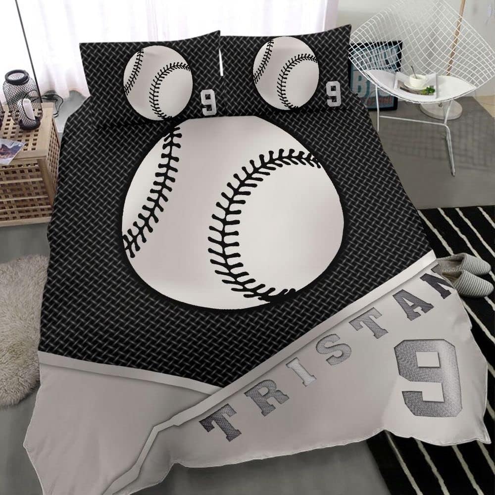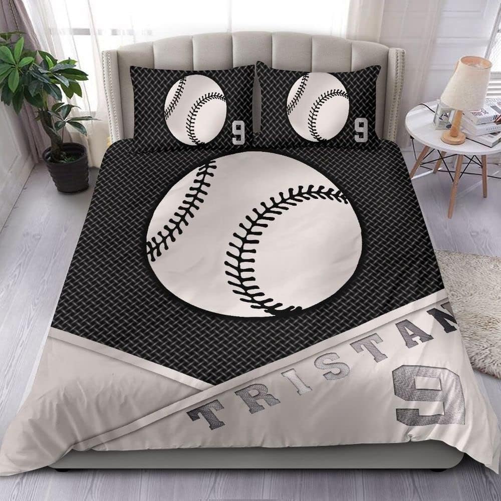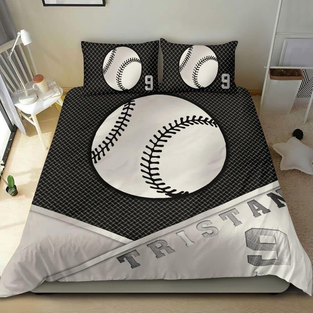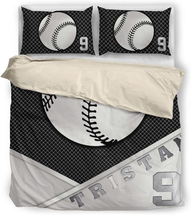 Add a bold, sporty style to your child's bedroom with this customizable baseball bedding set. Designed to reflect their favorite team or name, the set features a durable duvet cover with a hidden zipper and corner ties to ensure a snug fit and effortless care. Included are two matching pillow shams, creating a cohesive and eye-catching look thatâs both functional and fun.
