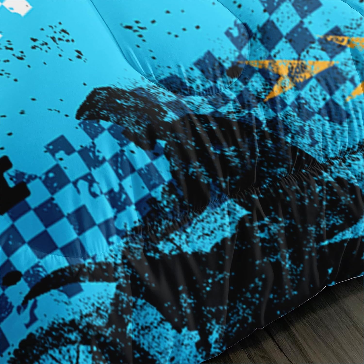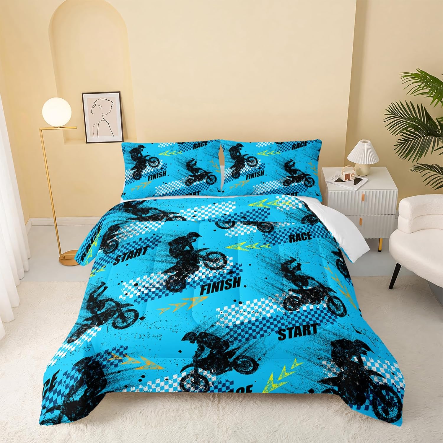 Whether your child loves dirt bikes or extreme sports, this set transforms their bedroom into an action-packed space. The twin size comforter set includes 1 comforter and 2 matching pillowcases, offering a stylish and functional setup for their bed. Easy to care for with machine-washable, stain-resistant, and shrink-proof properties, it keeps your childâs room looking fresh and vibrant effortlessly.