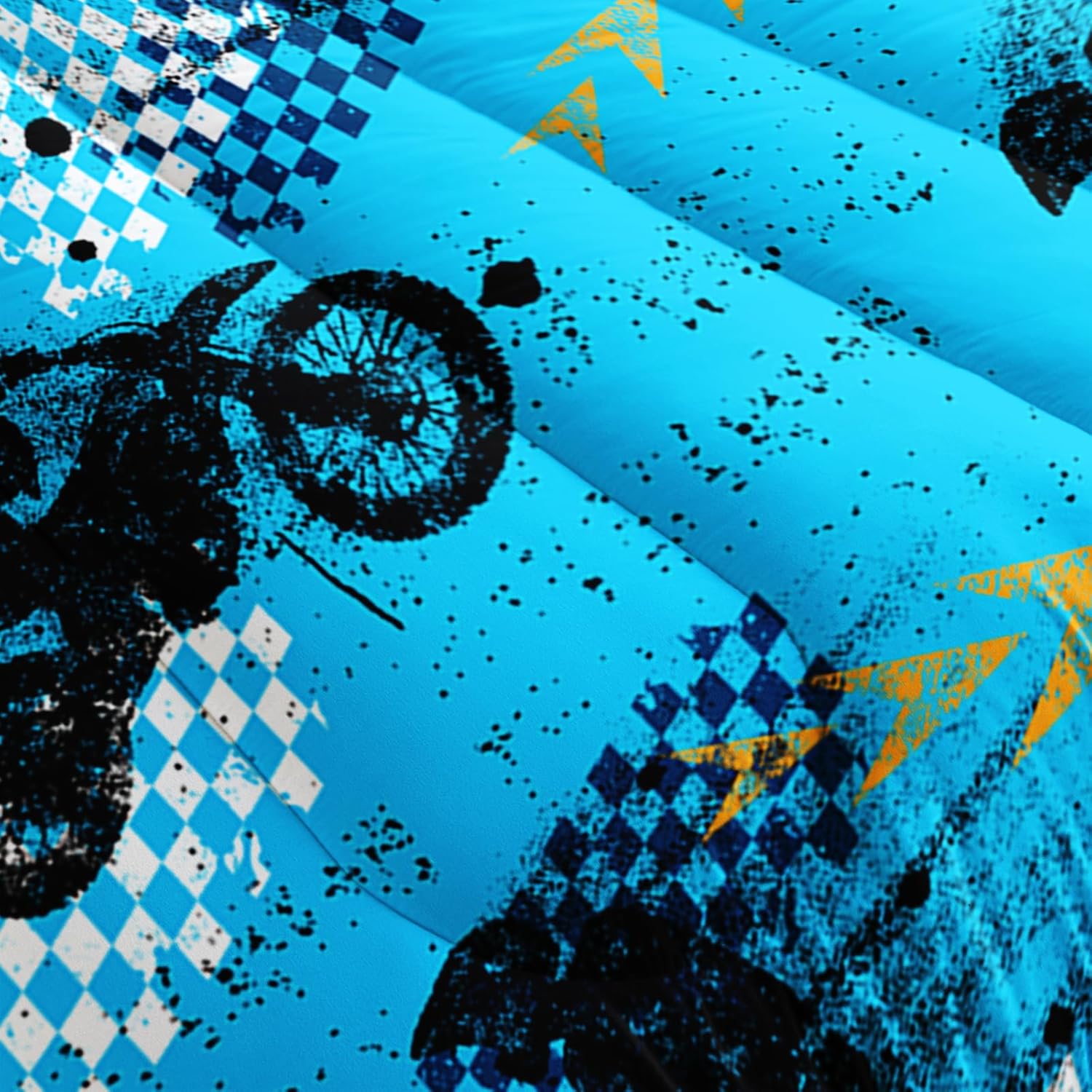 This QOOMO Dirt Bike 3D quilt set is a dream come true for young adventurers. The vibrant, kid-friendly design features a detailed motorbike and sport theme that brings cheer and safety to your childâs room. With its ultra-soft microfiber polyester fabric, this comforter set is breathable, cozy, and ideal for year-round use, helping your child sleep soundly no matter the season.