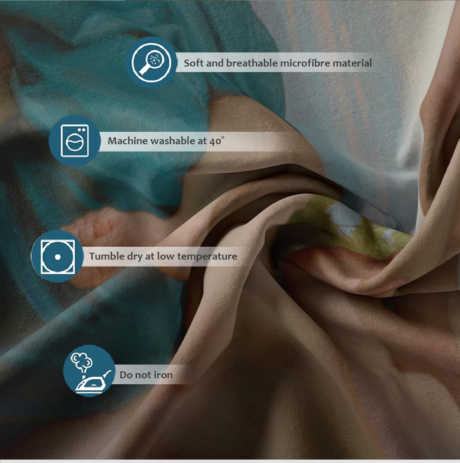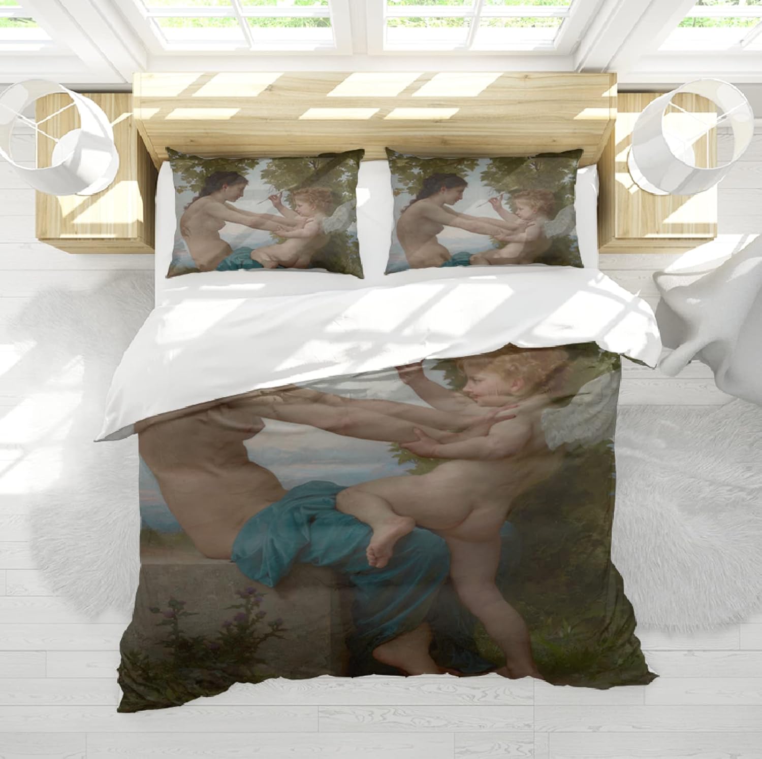 The intricate Adolphe Bouguereau print brings a touch of artistry and warmth to any bedroom. With its vibrant 3D pattern, this set is a conversation starter and a perfect complement to your home décor, adding a touch of sophistication to your space.