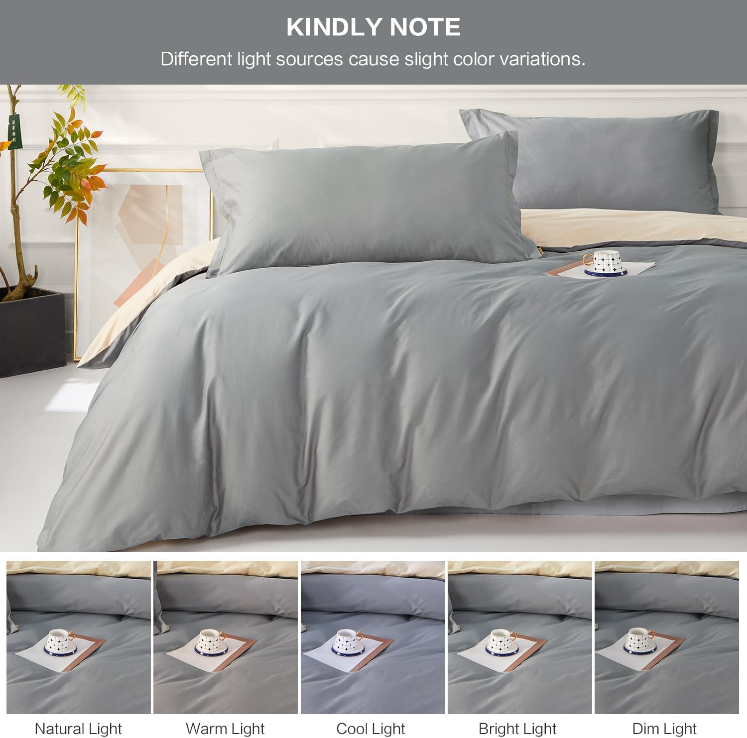 This SAPHREAS grey duvet cover set is designed to bring a touch of elegance and comfort to your bedroom. Made from 100% pure cotton, it offers a soft, breathable surface that feels luxurious against your skin. The solid light grey color is versatile, easily matching a wide range of bedroom styles and decor. With a zipper closure, the set is easy to install and remove, making it a practical choice for busy households. Featuring 8 corner ties, it ensures your bedding stays secure and wrinkle-free, even after regular use. Ideal for both children and adults, this 3-piece set includes a duvet cover and two pillow shams, providing a complete, cozy sleep solution without the need for an extra comforter insert.