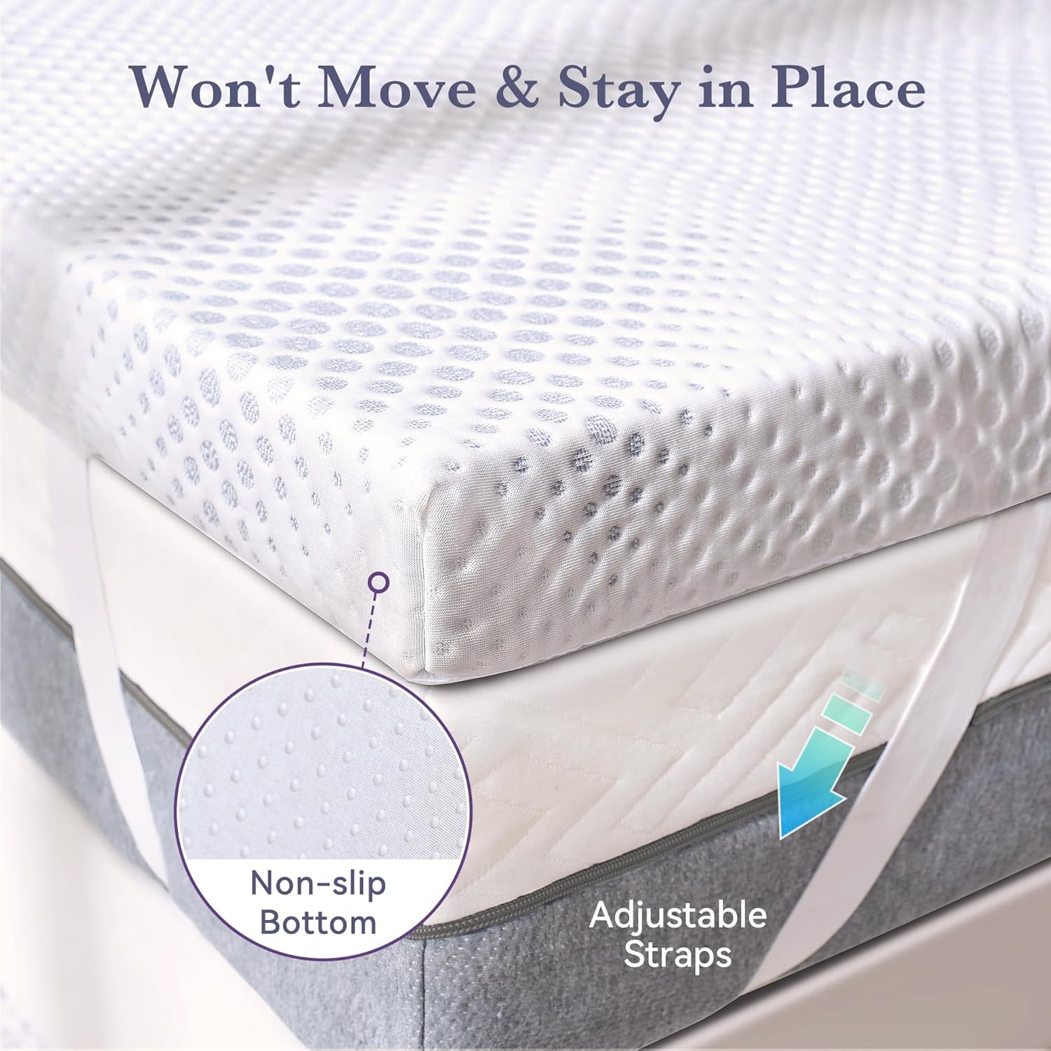 Transform your sleep experience with a high-quality mattress topper designed for maximum comfort and support. Our 3-inch thick gel memory foam layer cushions your mattress against sagging and evenly distributes weight, providing essential pressure relief and a more balanced sleep surface. Whether you're dealing with an old mattress or looking to enhance your current one, this topper helps maintain a fresh and restful sleeping environment.