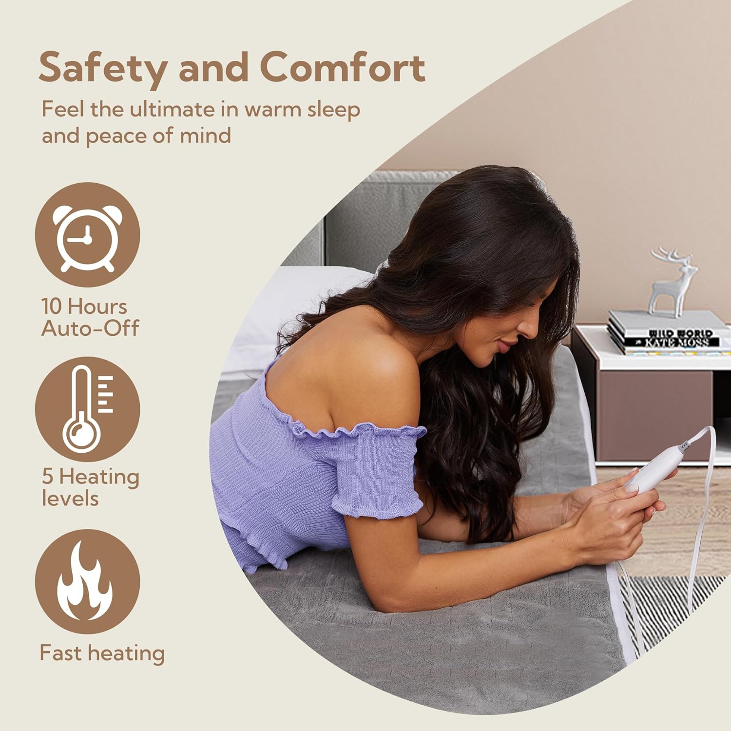 Safety and convenience are key with the built-in 10-hour auto shut-off function. It ensures you stay warm without the risk of overheating, while also saving energy by automatically turning off after the set time. Plus, it's lightweight and quiet, making it perfect for any sleep setup without disturbing your rest.