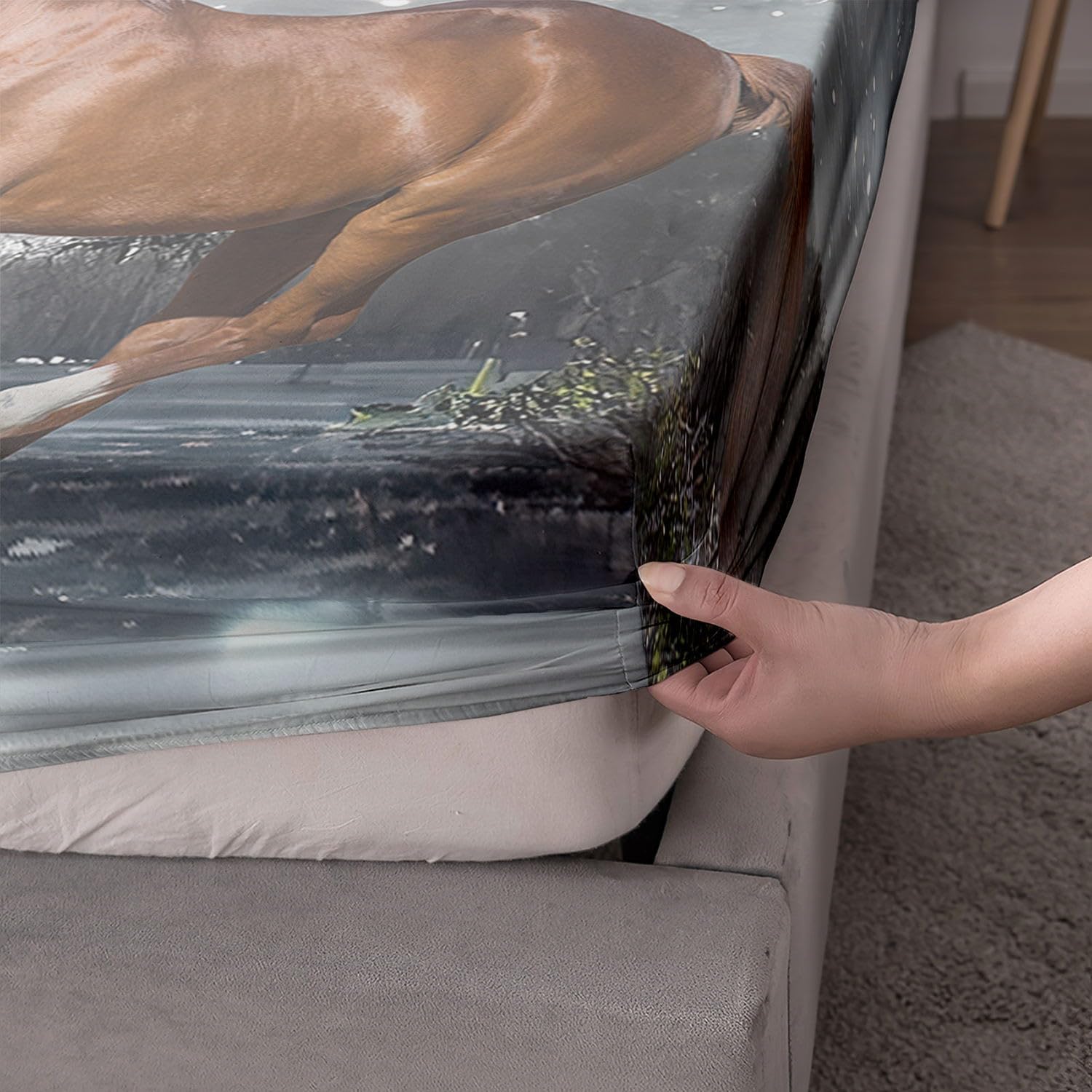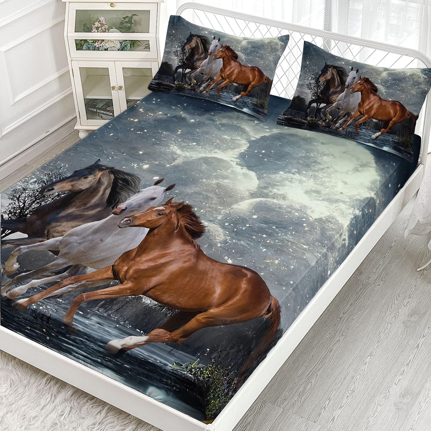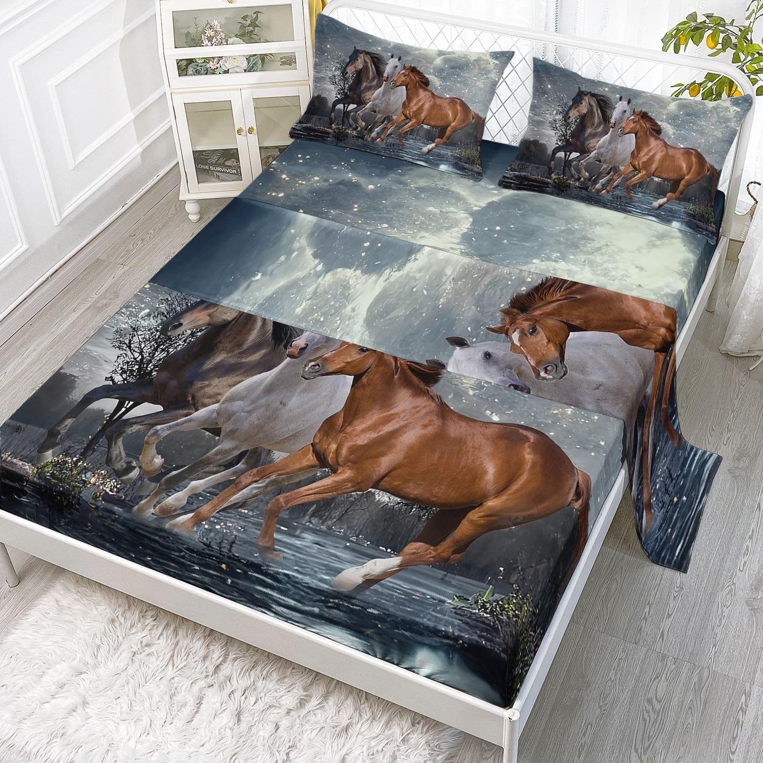 Smell Sunshine offers a 4-piece horse-themed bedding set for kids, featuring a full sheet, fitted sheet, and two pillowcases. Made of premium microfiber, it's soft, comfortable, and easy to maintain. Perfect for adding style and charm to any child's room.