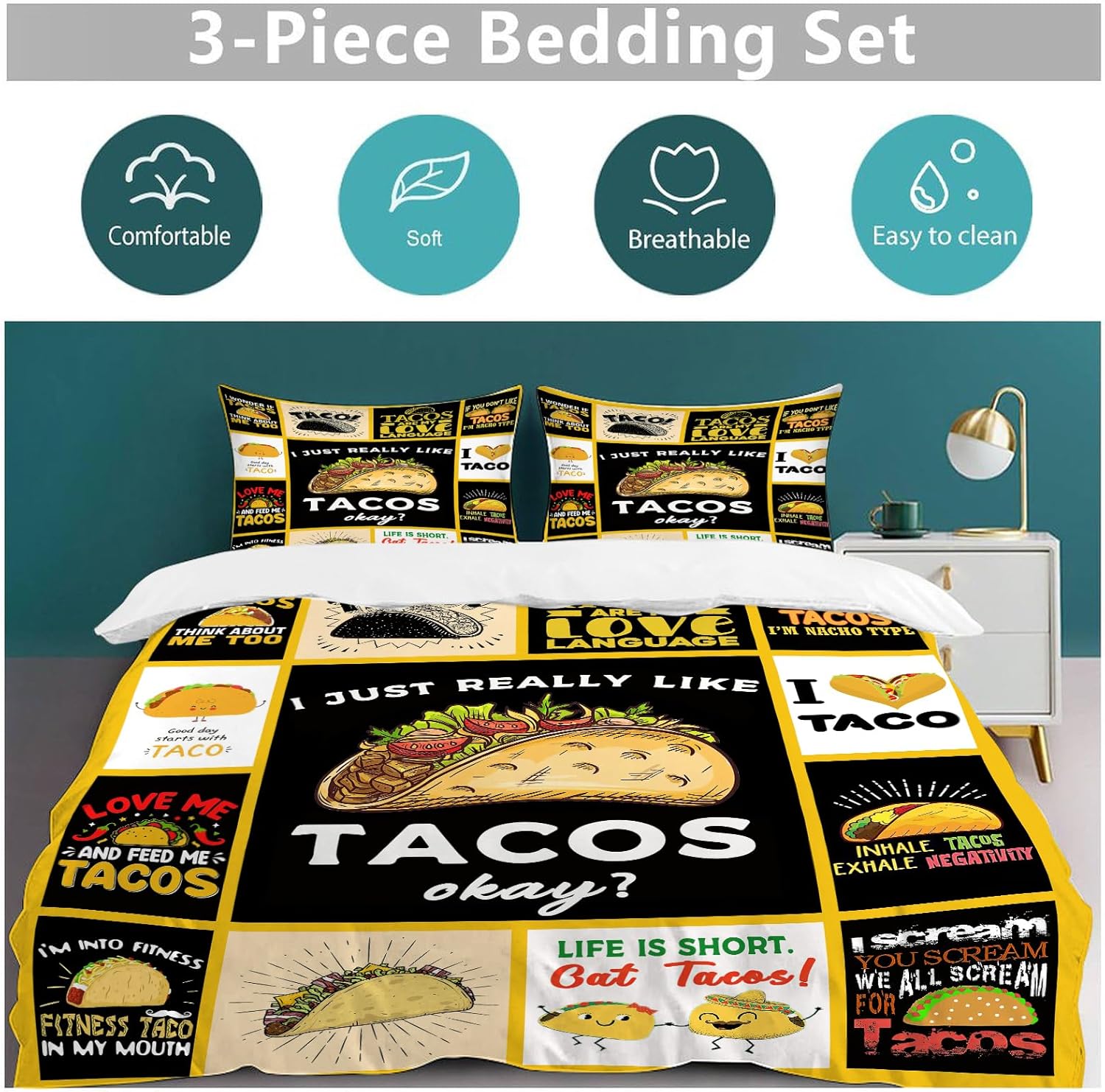 Bring your favorite food-themed decor to life with the Taco bedding set. It's not just a bedding set—it's an expression of your love for vibrant, playful aesthetics and comfort.