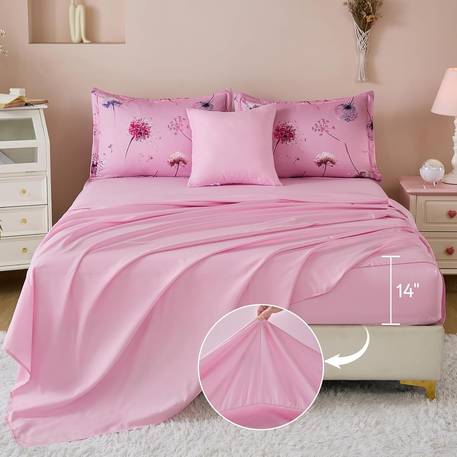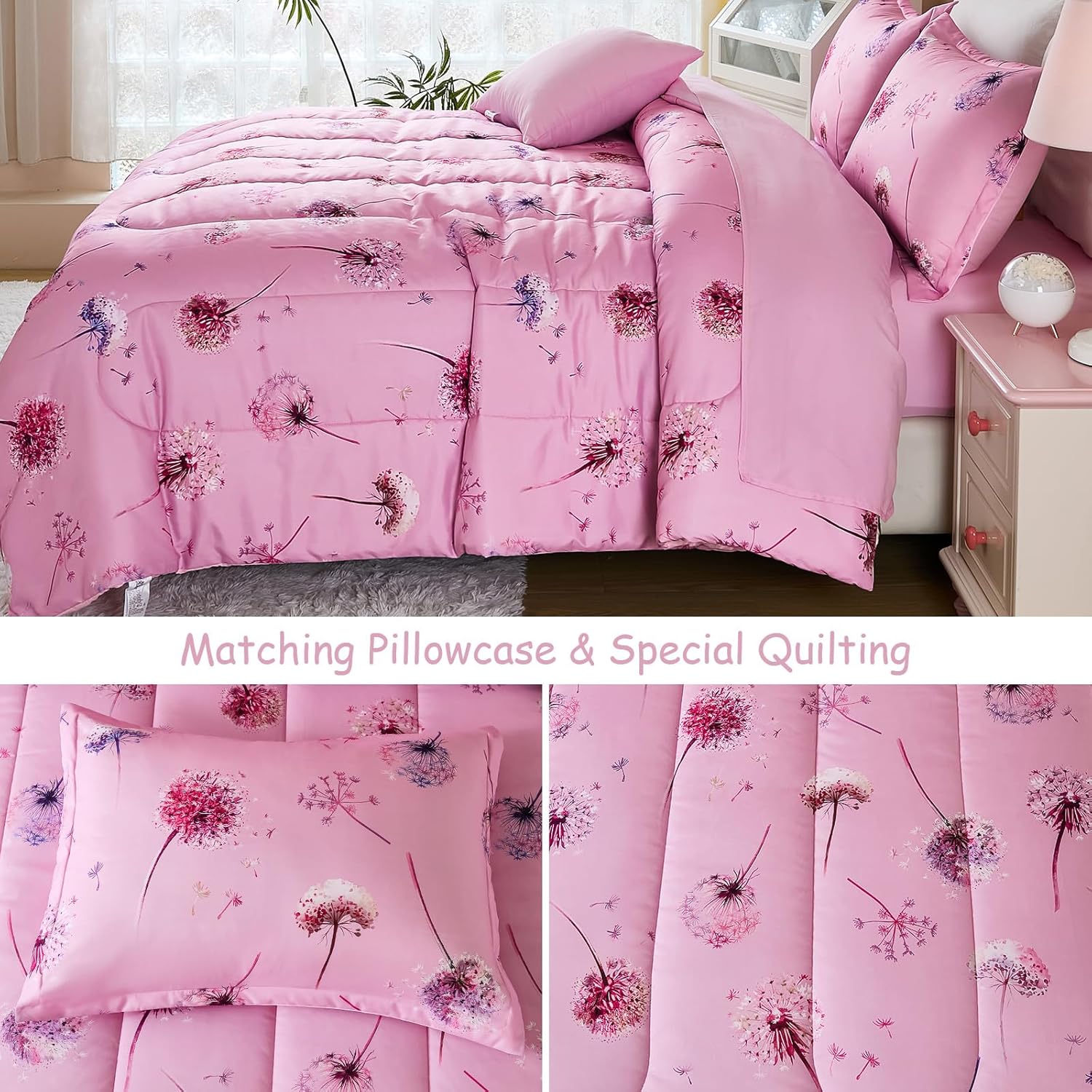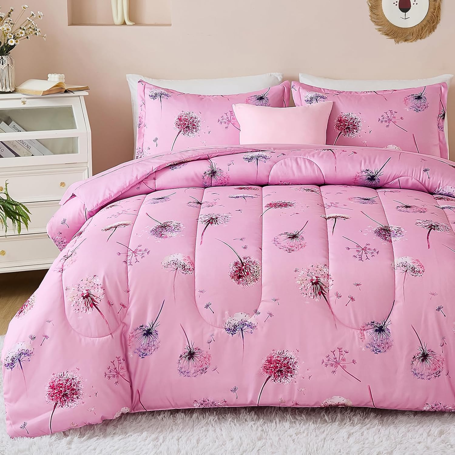 Create a dreamy and whimsical atmosphere in your childâs room with this adorable 6-piece twin bedding set. Featuring a charming dandelion pattern in soft pink tones, it adds a touch of playfulness and charm to any bedroom décor. Every piece is designed to provide comfort and style for little ones, making it the perfect addition to bedtime routines or nursery setups.