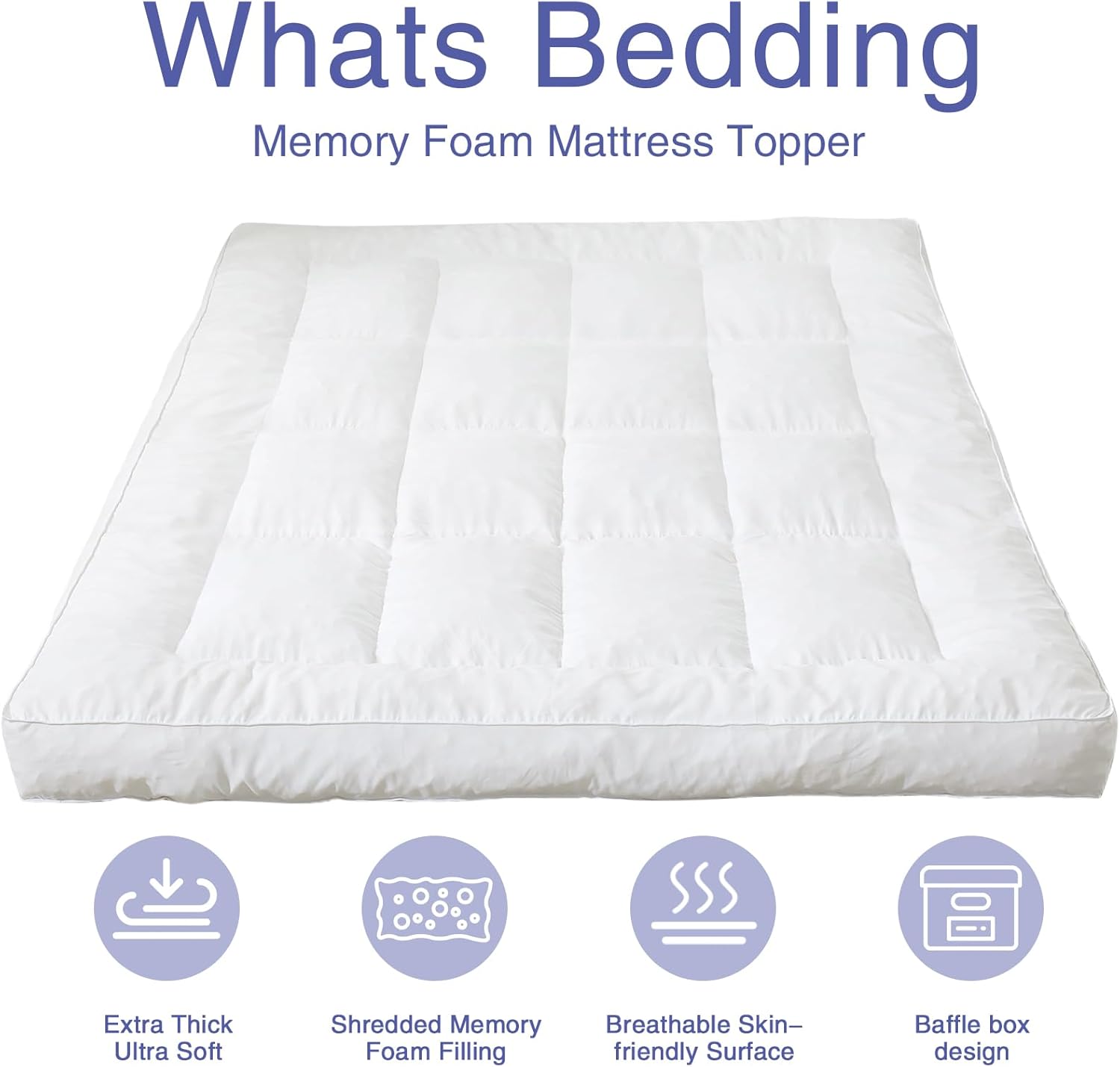 Transform your sleep experience with the 4-inch memory foam mattress topper from WhatsBedding. Designed to offer a perfect blend of softness and support, this topper is ideal for anyone looking to enhance their mattress comfort or alleviate back pain. The fluffy shredded memory foam filling adapts to your body shape, providing personalized cushioning that reduces pressure points and promotes better rest.
