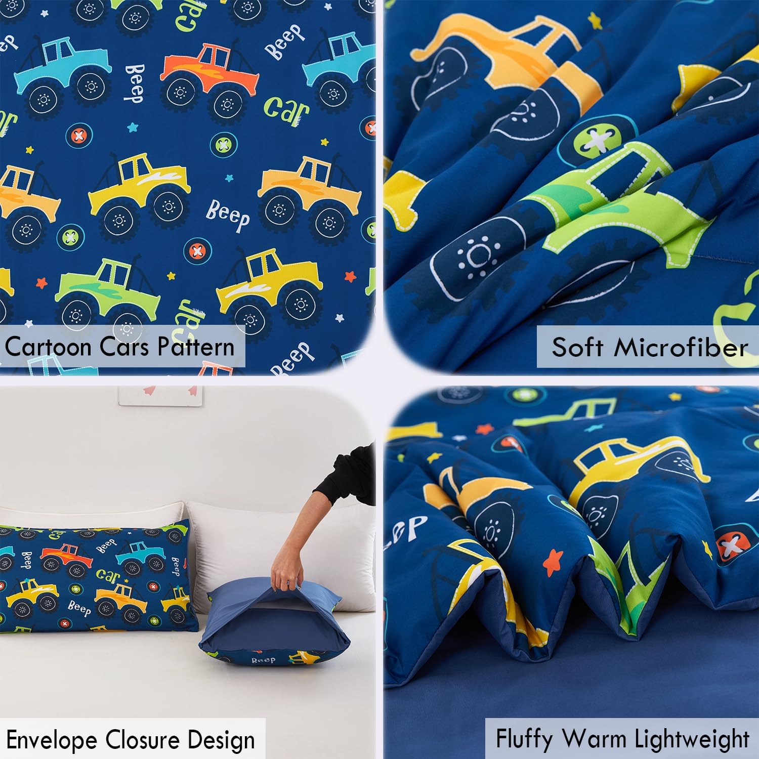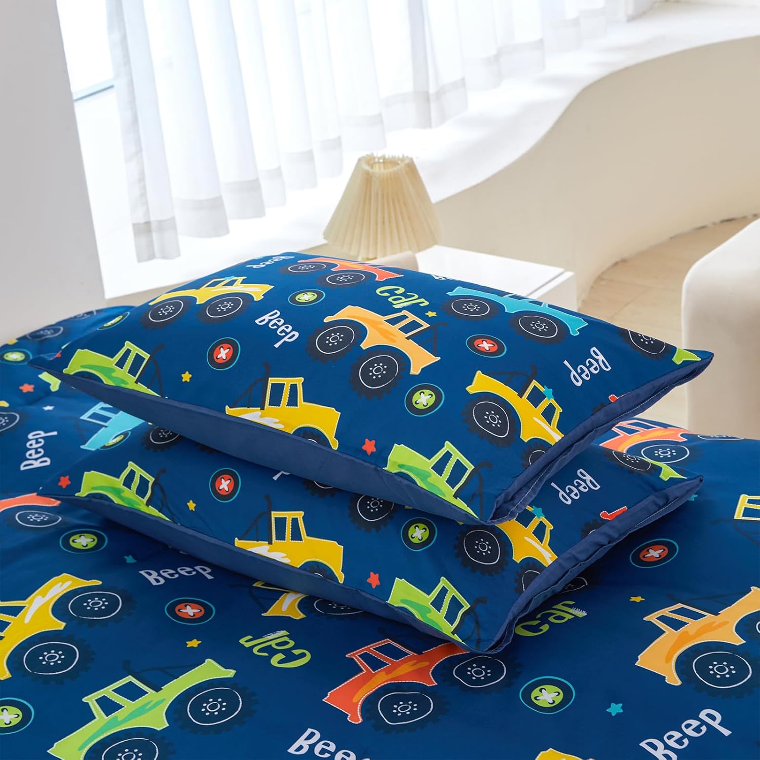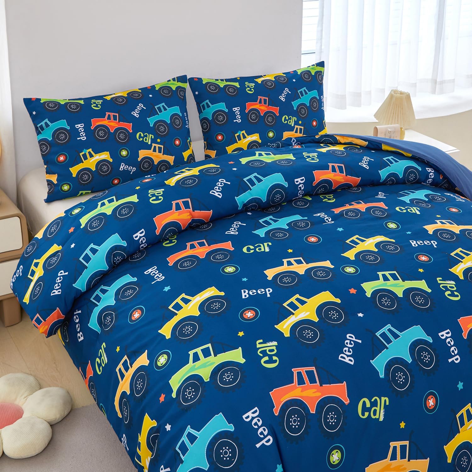 Keywords: cartoon trucks bedding set, boys bedroom comforter set, twin size kids comforter set