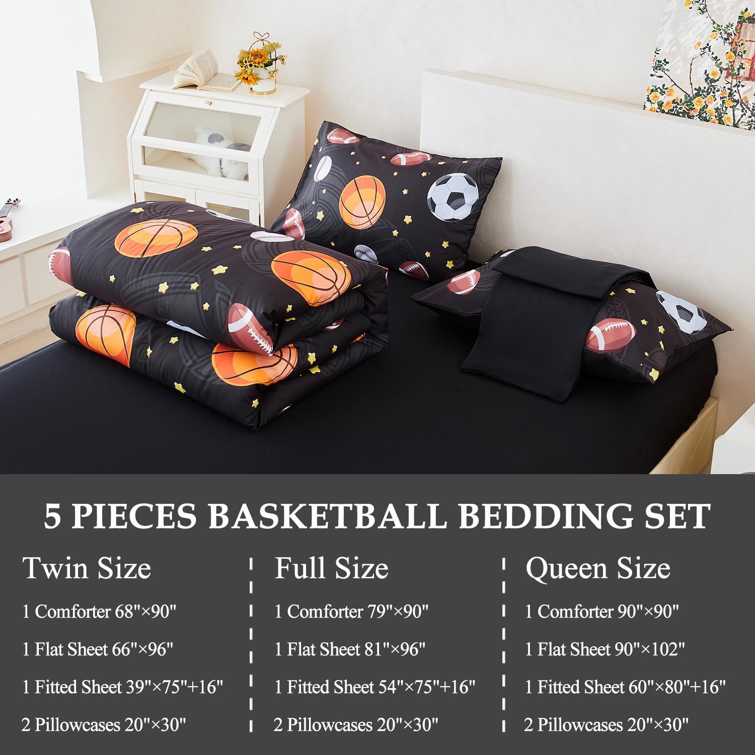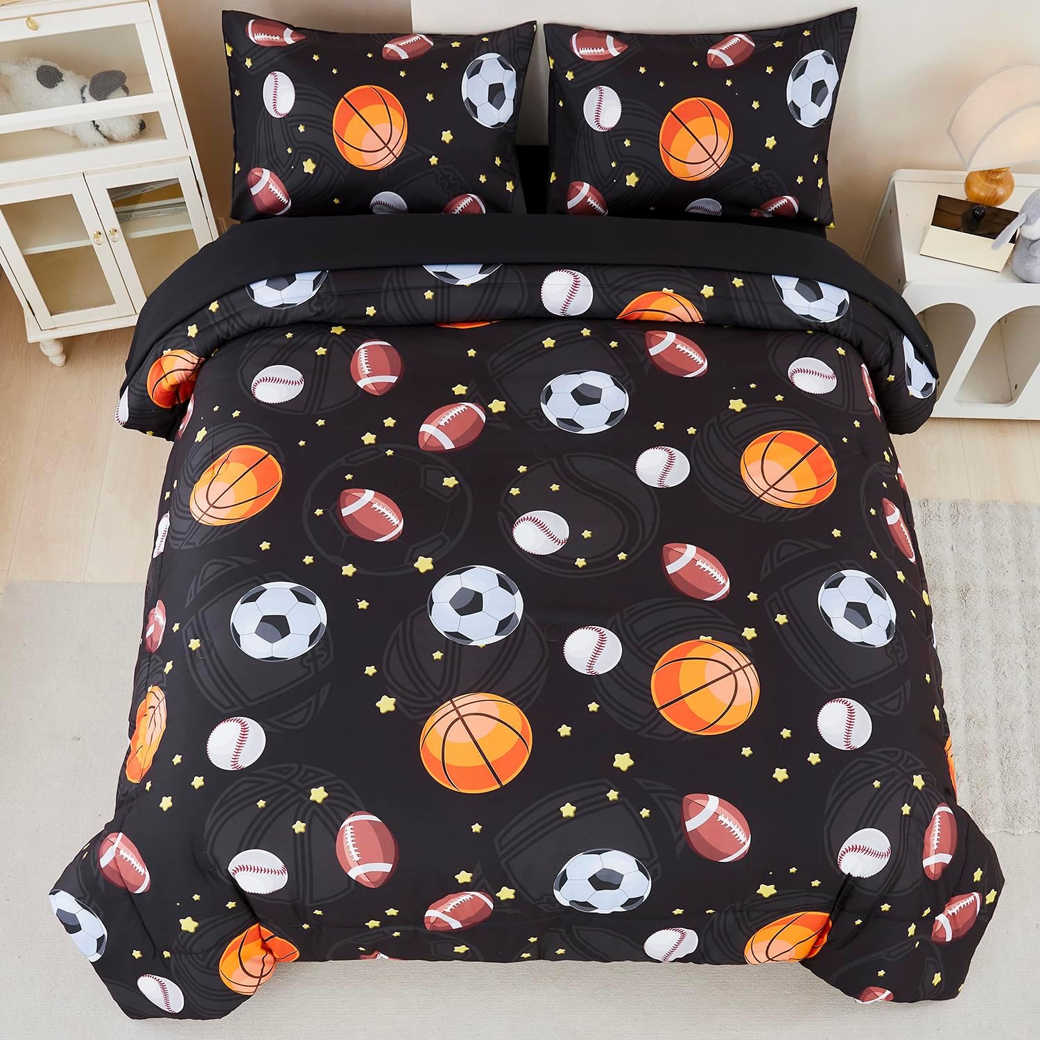 This ZSYAYAHA Twin Bedding Set with Comforter is a must-have for any sports-loving child. The 5-piece set includes a comforter, fitted sheet, flat sheet, and two pillowcases, providing everything needed to create a complete and inviting sleep space. The playful sports-themed design is ideal for children's rooms, while the soft, fluffy polyester fabric ensures a cozy and supportive feel all year round.